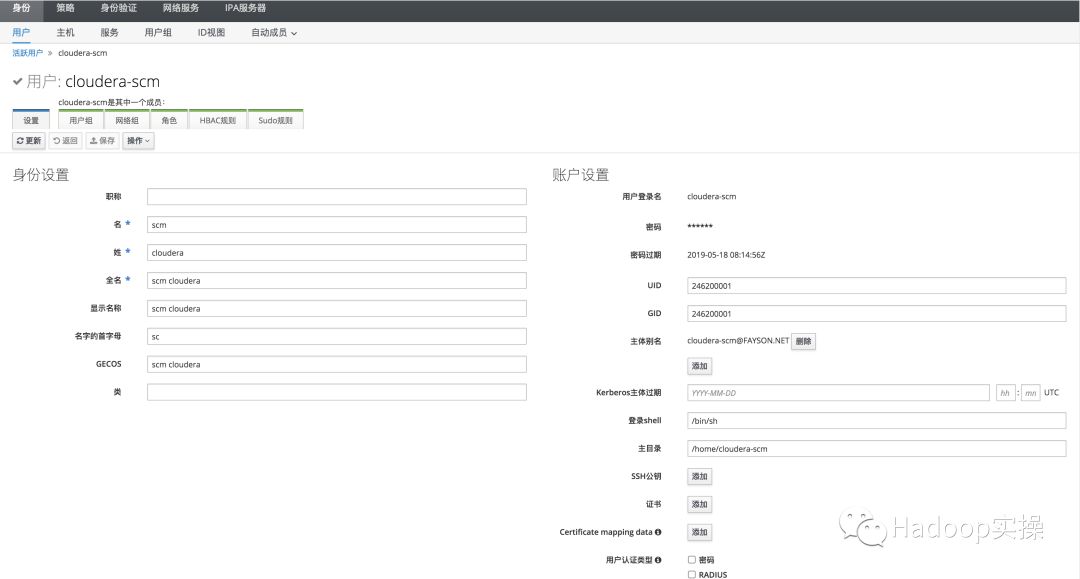 4.在FreeIPA上创建一个cloudera-scm的用户