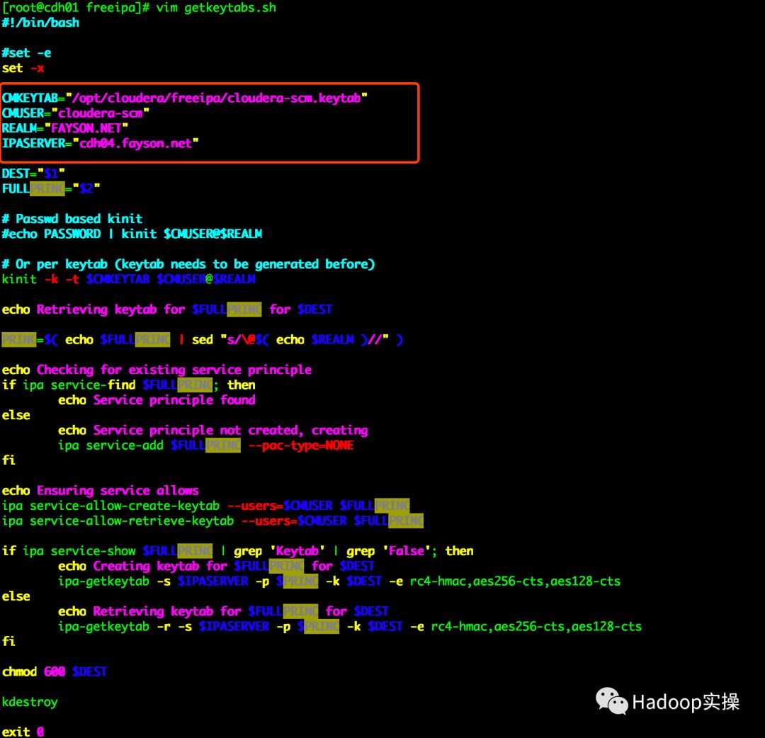 注意:getkeytabs.sh脚本中CMKEYTAB、CMUSER、REALM、IPASERVER参数修改为自己相应环境的配置。