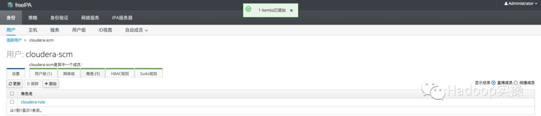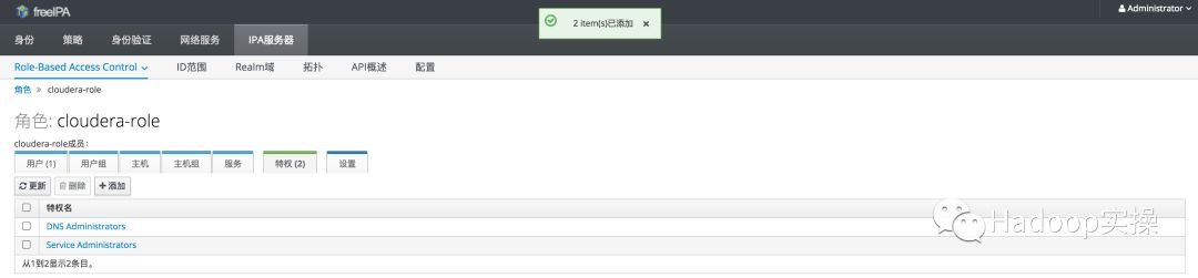 3.在FreeIPA上创建一个cloudera-role角色并赋予权限