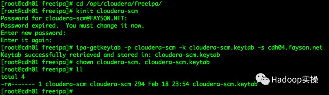 [root@cdh01 freeipa]# chown cloudera-scm. cloudera-scm.keytab