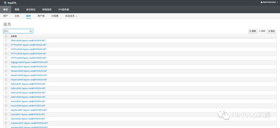 5.登录FreeIPA也可以看到生成的所有服务的Principal