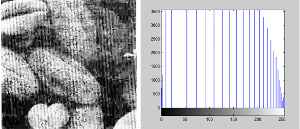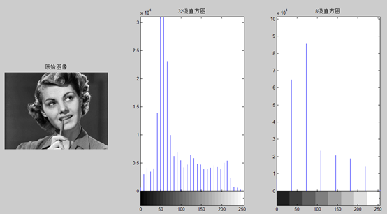 Imhist(img,b); 可以指定灰度等级b,默认是256级,实际工程中一般32级,如下图。