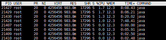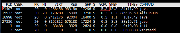 1、我们的Java服务器一般都是部署在Linux系统上面的,当出现CPU过高时,可以先用top命令找到CPU过高的Java进程的进程号