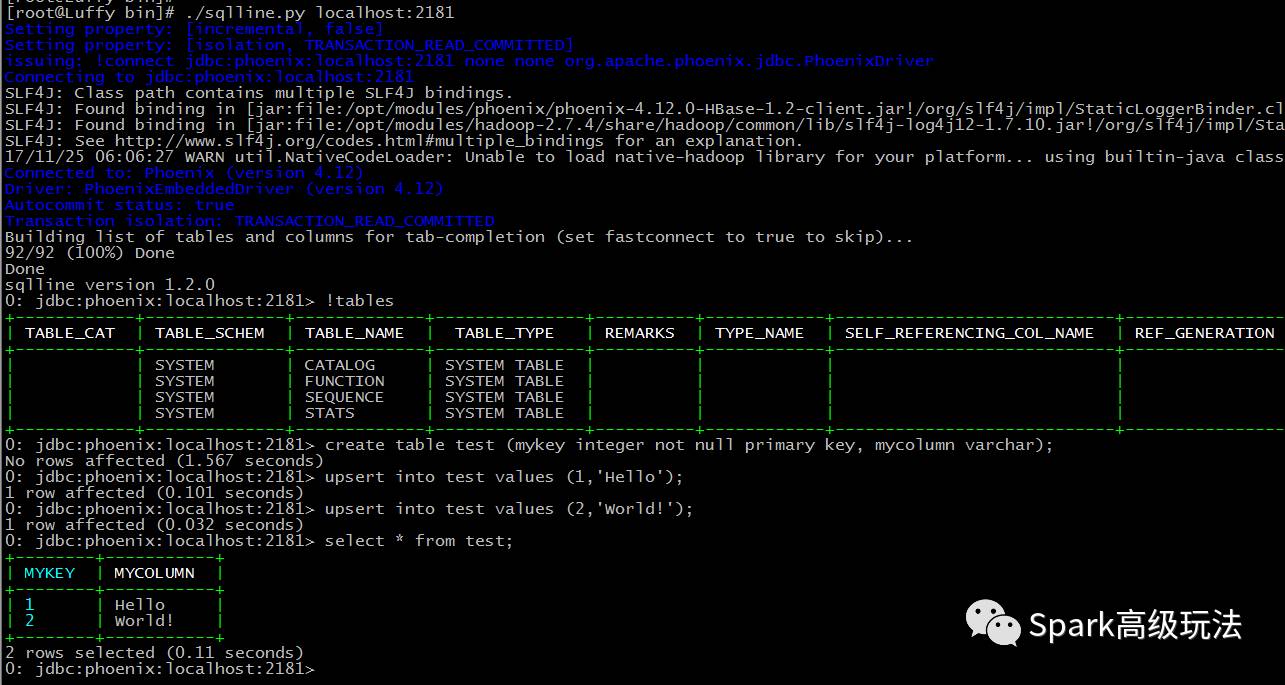 在phoenix的bin目录下执行: sqlline.py [zookeeper]