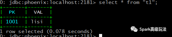比如,在hbase上创建表t1,然后映射到phoenix上,分两步: