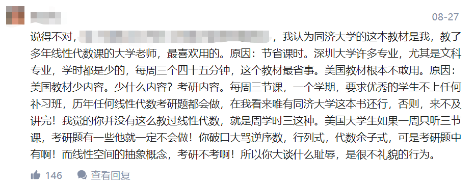 还有同学指出,这个问题并不是同济版《线性代数》所特有的,而是国内线代教材的通病。