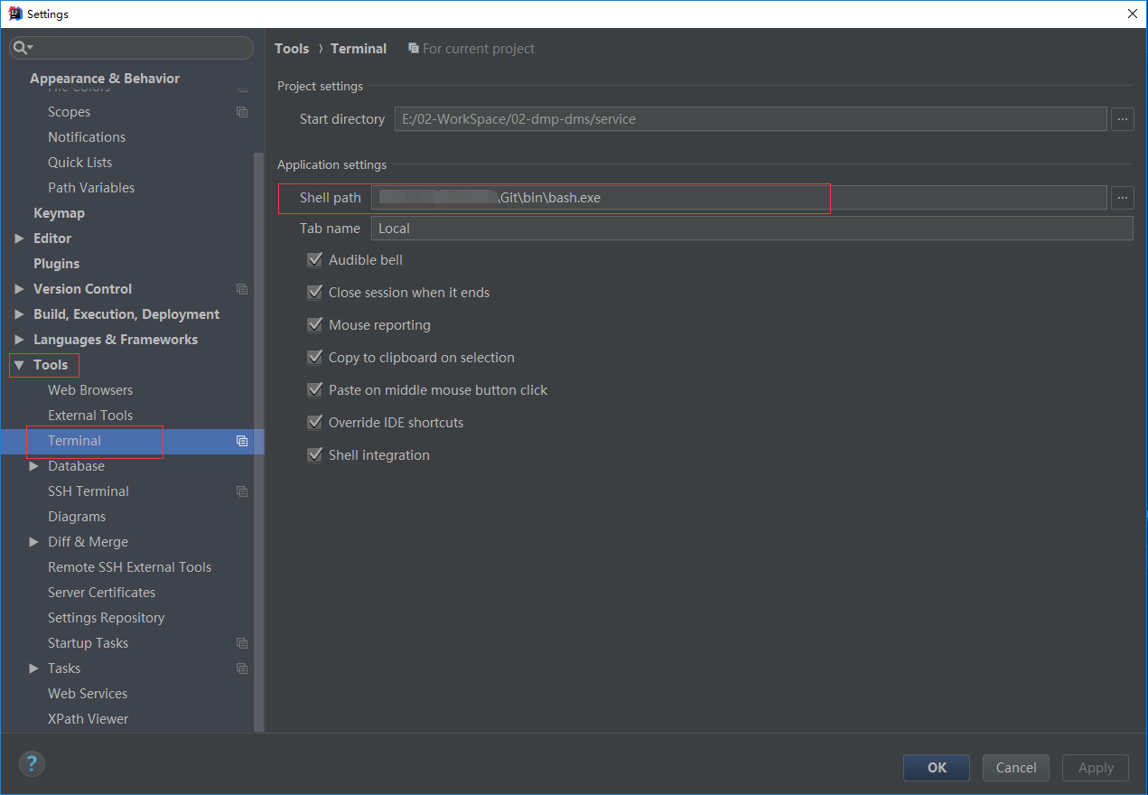 如果使用自带的命令窗口的话,可能会出现git中文乱码等问题,因此可以设置为git自带的bash.exe;设置之后不会影响使用