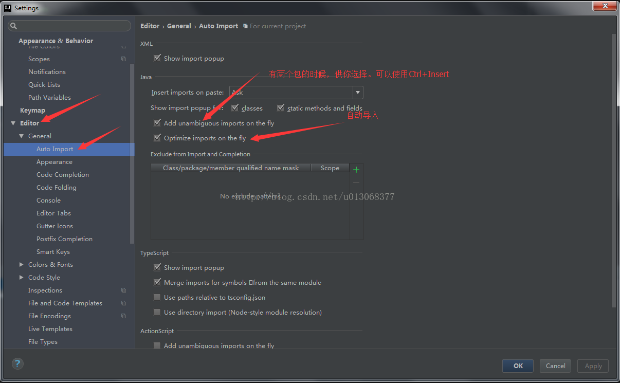 3、设置自动导包(注意:这步设置后,会将别人的代码的包自动整理,慎重)