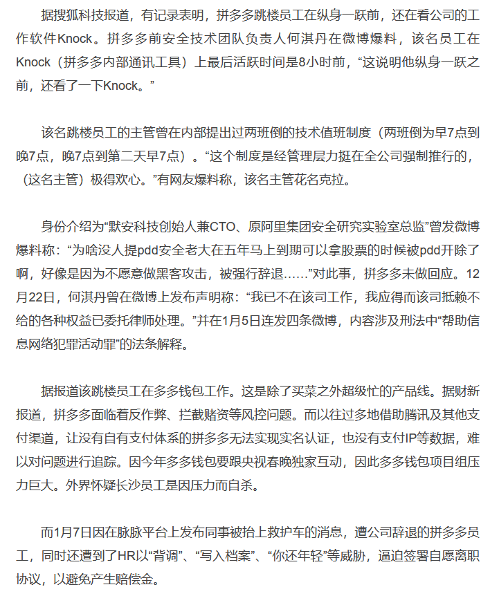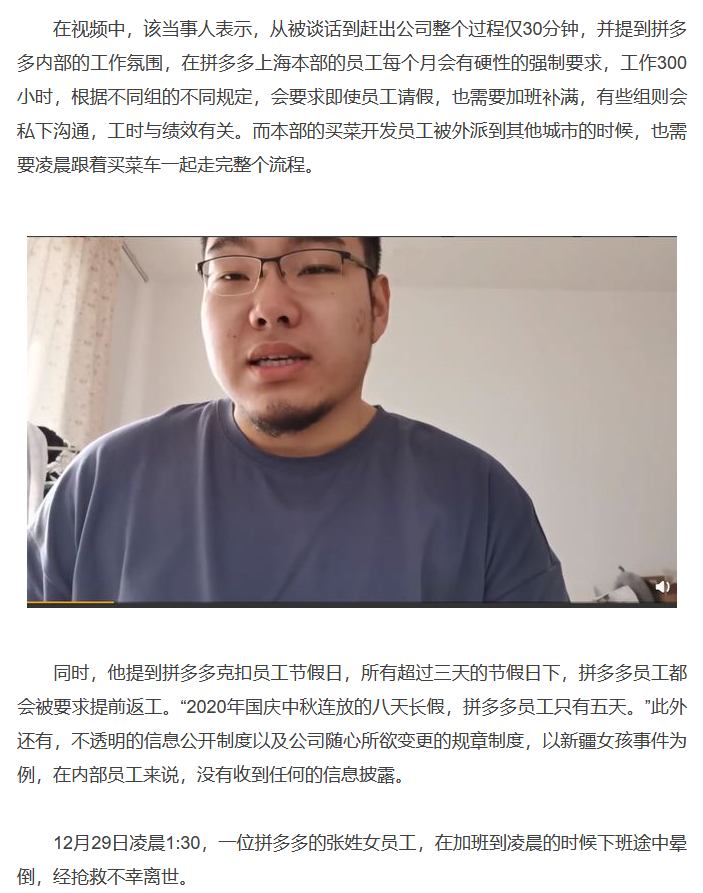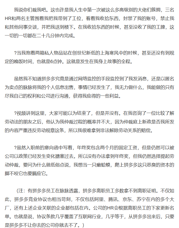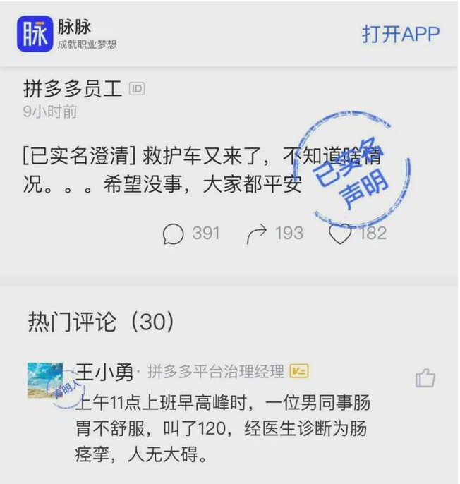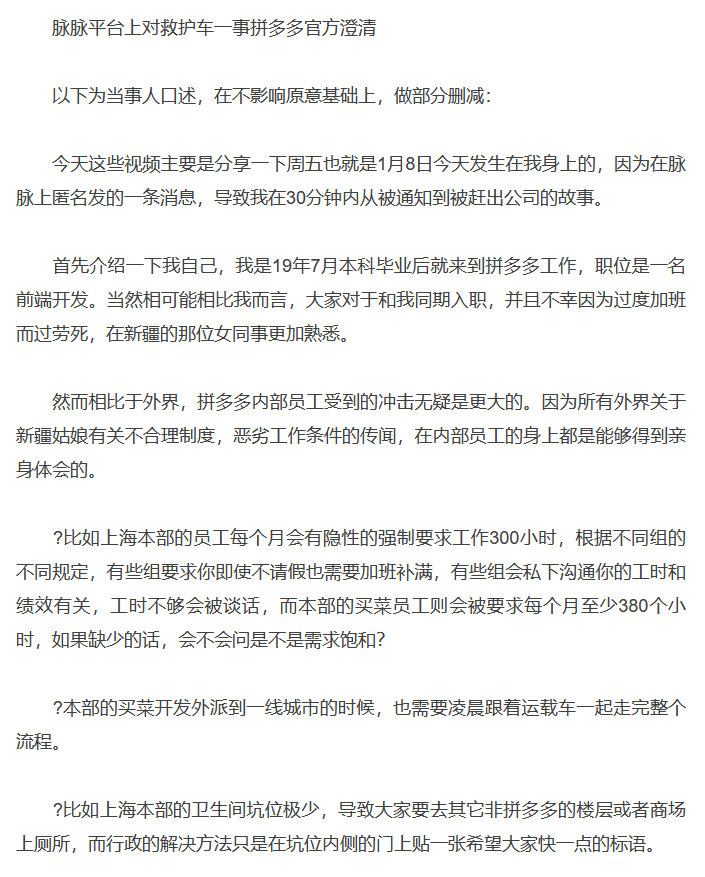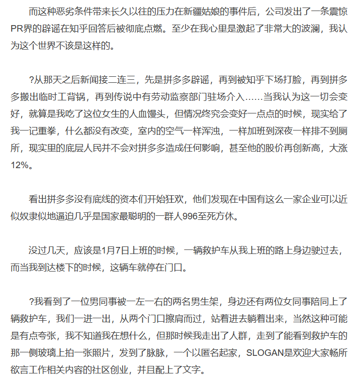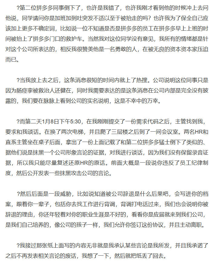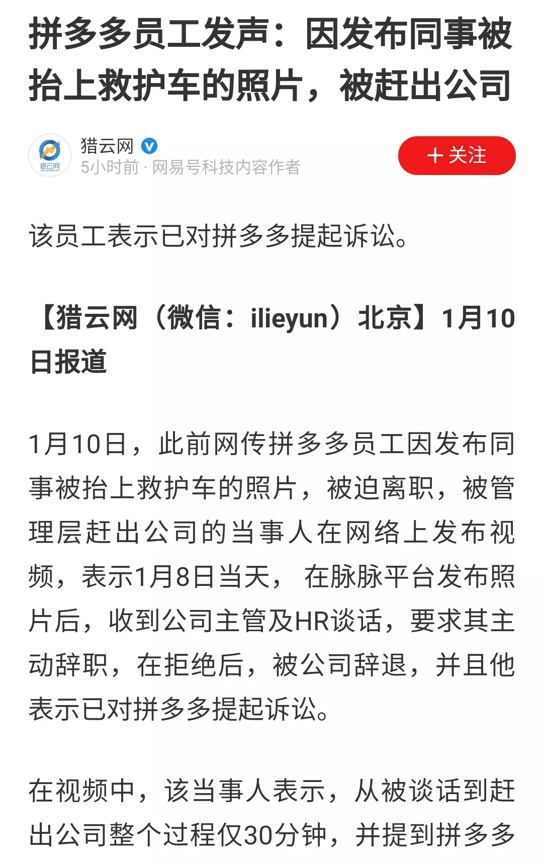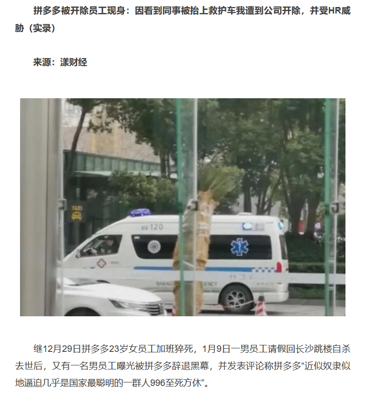 @无码禅师 :拼多多员工发声:因发布同事被抬上救护车的照片,被赶出公司
