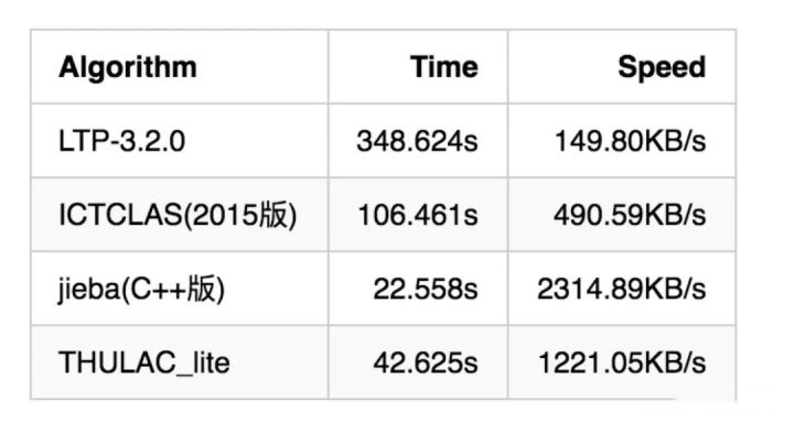 除了以上在标准测试集上的评测,我们也对各个分词工具在大数据上的速度进行了评测,结果如下: