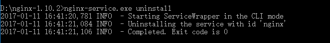 11、卸载nginx服务,在cmd命令窗口下执行:nginx-service.exe uninstall。
