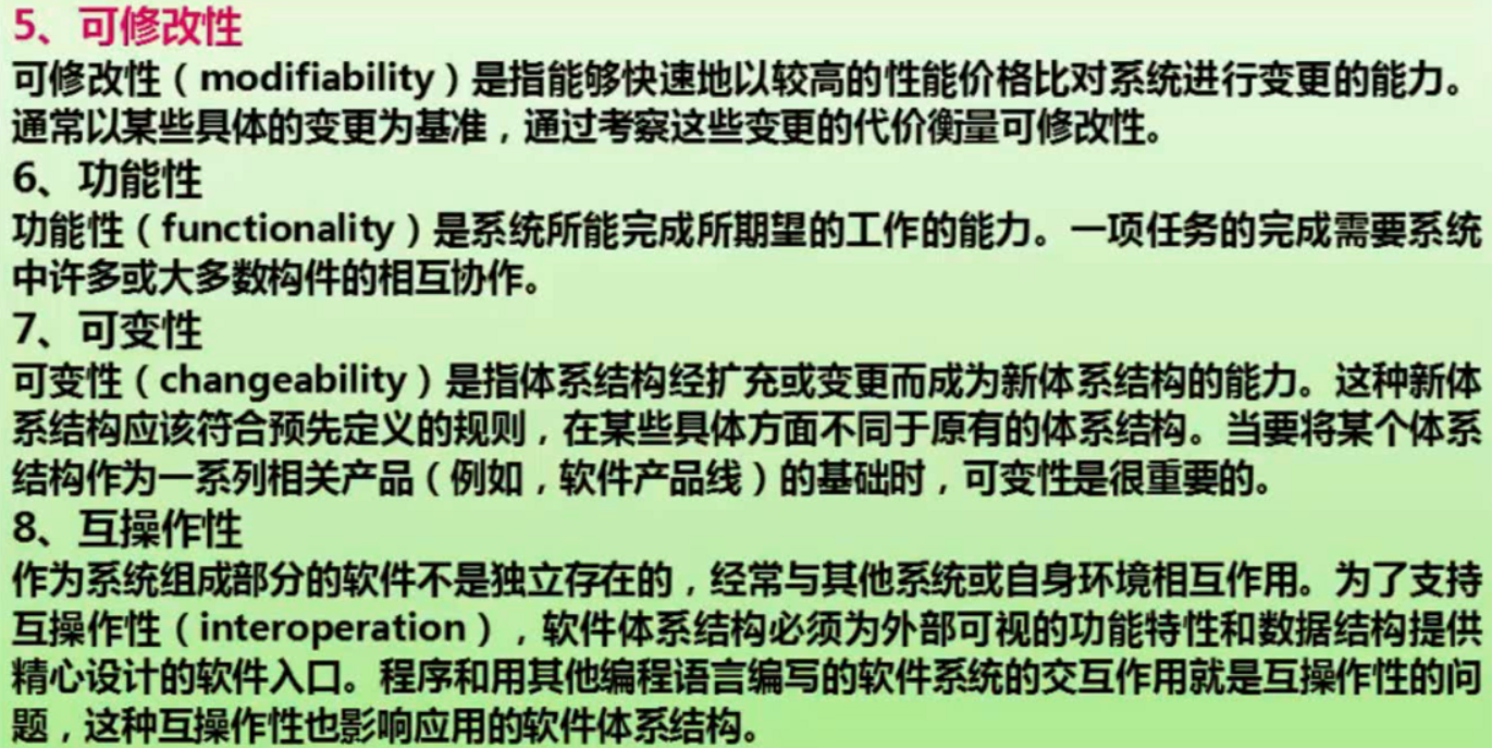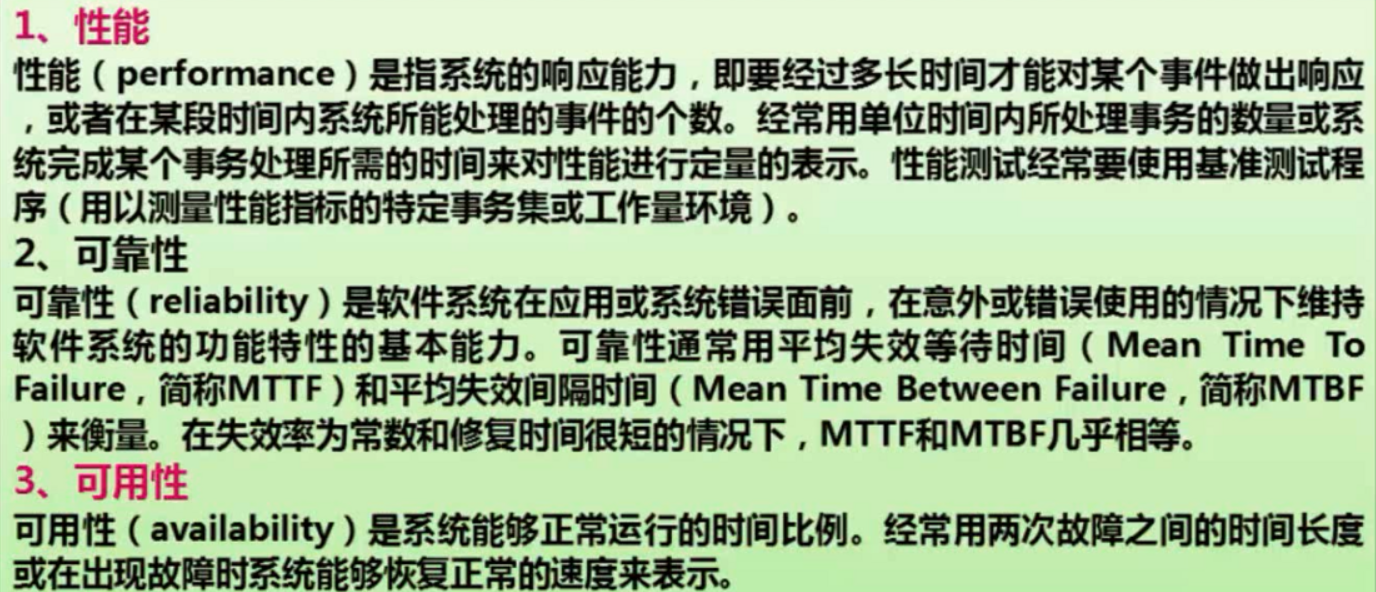 二是无法通过观察系统运行确定的:可更改性,可移植性,可重用性,可集成性,可测试性
