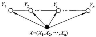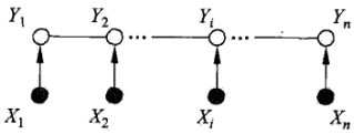再来看线性链条件随机场,在一般的条件随机场中并没有要求X和Y具有相同的结构,而在线性链条件随机场中要求X和Y具有相同的结构,具体结构如下图