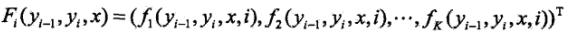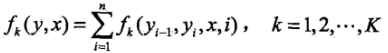 tk(yi-1, yi, x, i),k = 1, 2, ..., K