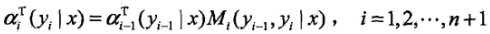 αi(yi|x)表示在位置i的标记是yi并且到位置i的前部分标记序列的非规范化概率,yi可取的值有m个,所以αi(x)是m维列向量,可以表示为