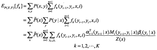 特征函数fk(x,y)关于条件分布P(y|x)的期望表达式是: