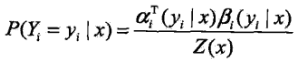 基于给定的前向向量和后向向量我们就可以处理开头的三个解答,首先是在位置i是标记yi的条件概率和在位置i-1与i是标记yi-1和yi的条件概率: