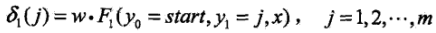 接下来通过维特比算法去求出序列y*,首先求出位置1的各个标记j = 1, 2, ..., m的非规范化概率: