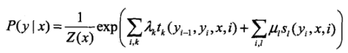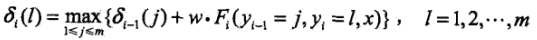 其中K是定义在该节点的局部特征函数的总个数,i是当前节点在序列的位置。