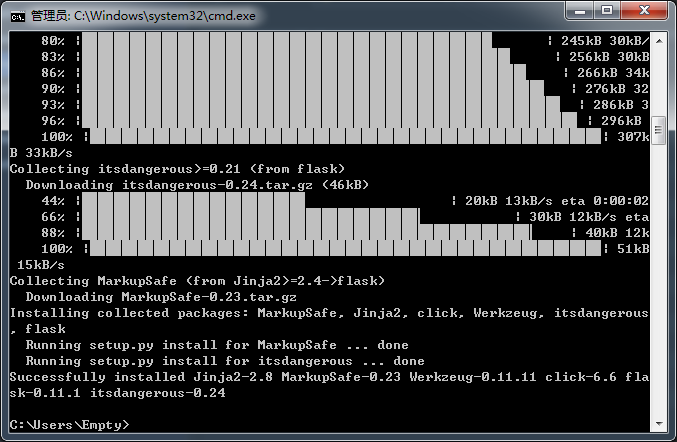 打开cmd,输入pip install flask (你要安装的包名称),按回车就开始进入安装了