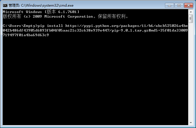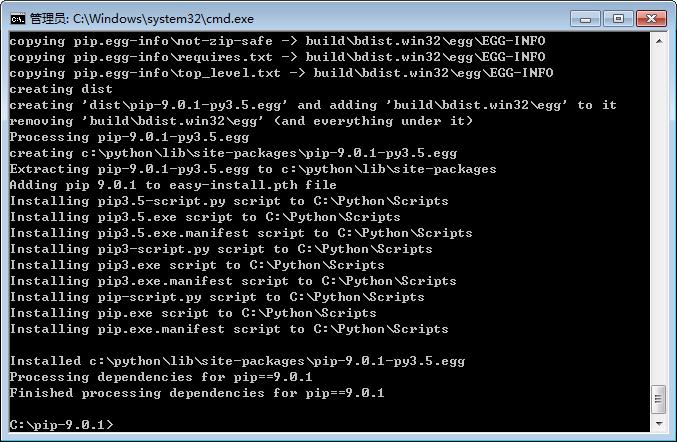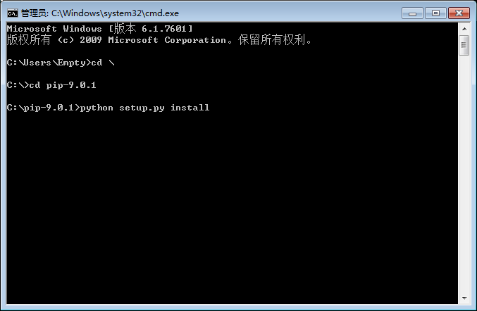 在DOS下输入下图命令,进入pip-9.0.1文件夹,然后输入:python setup.py install 进入pip安装