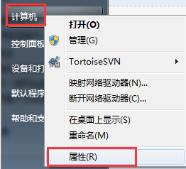 打开开始菜单,对计算机点右键=》属性