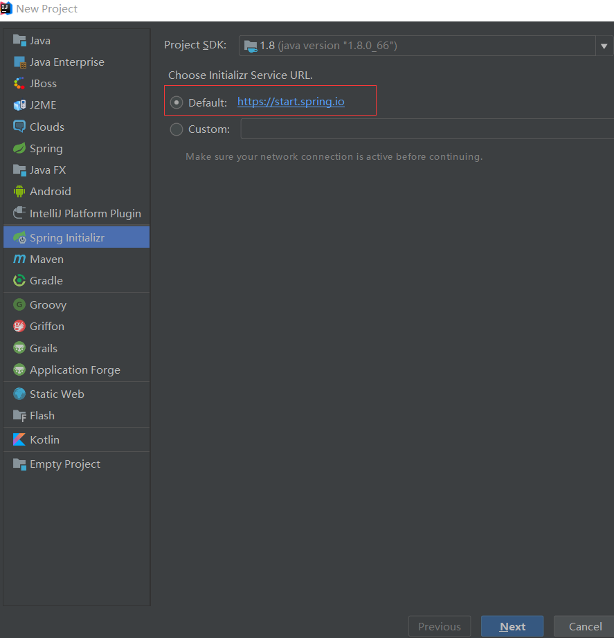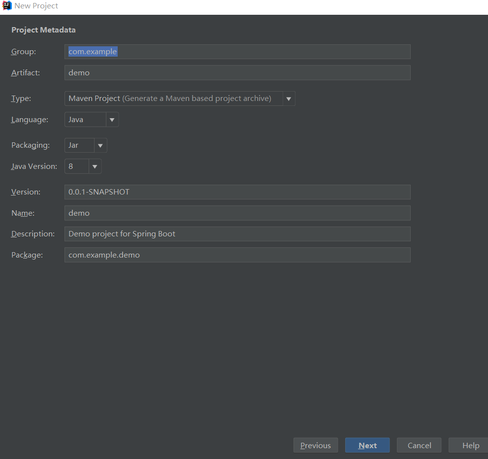 有时候会遇到timeout连接超时,将Defult默认的路径改为自定义:http://start.spring.io点击next