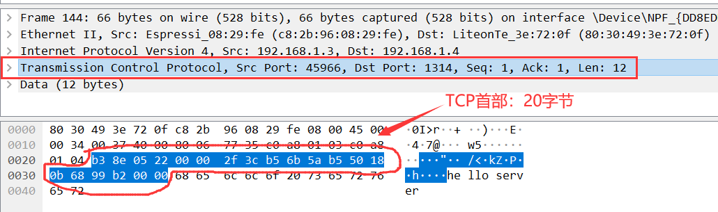 这是TCP通信所必须的,除了具体的数据包之外还包括了建立连接、断开连接过程需要的一些数据。
