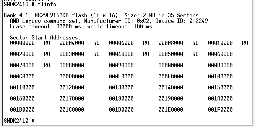 输入 flinfo 命令,查看 flash 信息,如下图所示:
