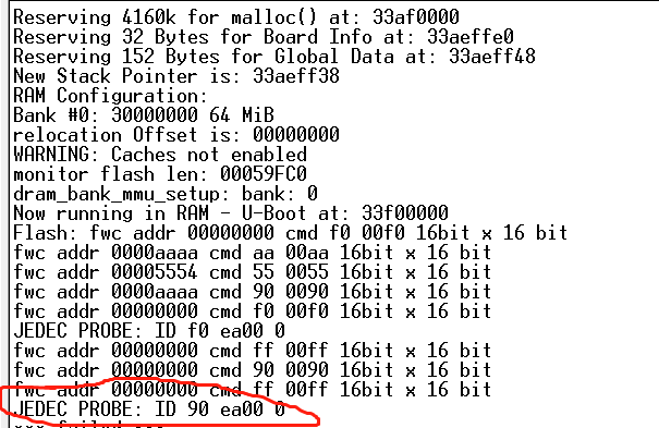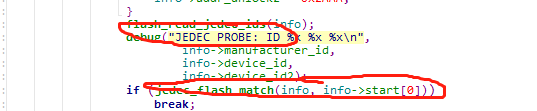 从图中可以看出已经读出厂家ID,设备ID了,但是不匹配,搜索 JEDEC PROBE 关键字,位于: