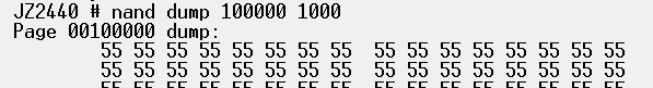 nand write 30000000 100000 1000 //将0x55写入nand