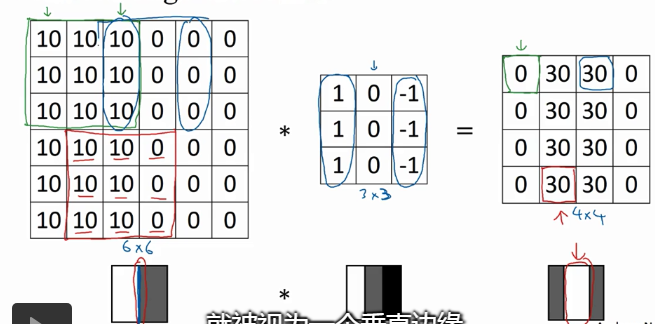 垂直边缘检测原理:检测滤波器是左边是1右边是-1中间是0;这样如果原本的图片出现垂直边缘即图片有一部分的左边灰度值小右边灰度值大,这样再和滤波器作用之后就得到了一个比较大的值。(滤波器的作用就是滤除跟它不一样的,留下和它一样的部分这一部分值很大)