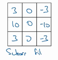可以用做垂直滤波器,中间的权重比较大,使得处于图像中央的权重比较大;scharr filter