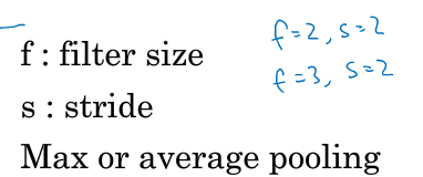 f=2,s=2,相当于把宽高各取一半。还是用那个公式,但是要注意的是f=2,s=2可以直接得到结果就是输出比输入少一半。