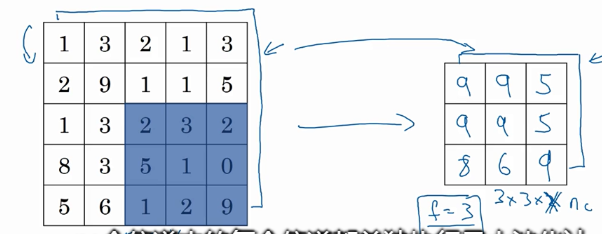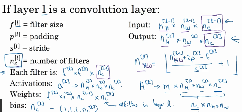 注意滤波器的通道数必须等于输入的通道数。但是输出的通道数取决于滤波器的个数;如果最后一层的维度为nxnxnc,即最后输出的特征个数为nxnxnc