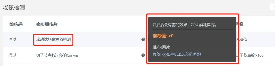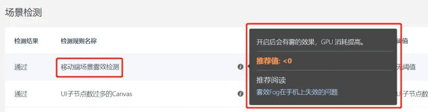 本条规则着眼于视觉效果和项目性能的平衡考量。场景开启雾效,那么GPU的渲染压力势必会增大。而且依据雾效设置和计算方式的选择,相关的性能开销会占到项目总消耗中的相当一部分比例。