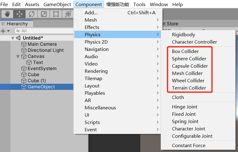 为了使项目内的对象能模拟出更真实的物理交互,Unity为开发者提供了一整套的碰撞体组件。