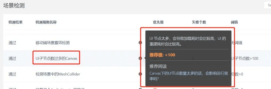 所以基于本条规则,在找出这些Canvas后,开发团队要适时进行UI组件的分类和Canvas的拆分等操作,以降低CPU压力,提高运行效率。