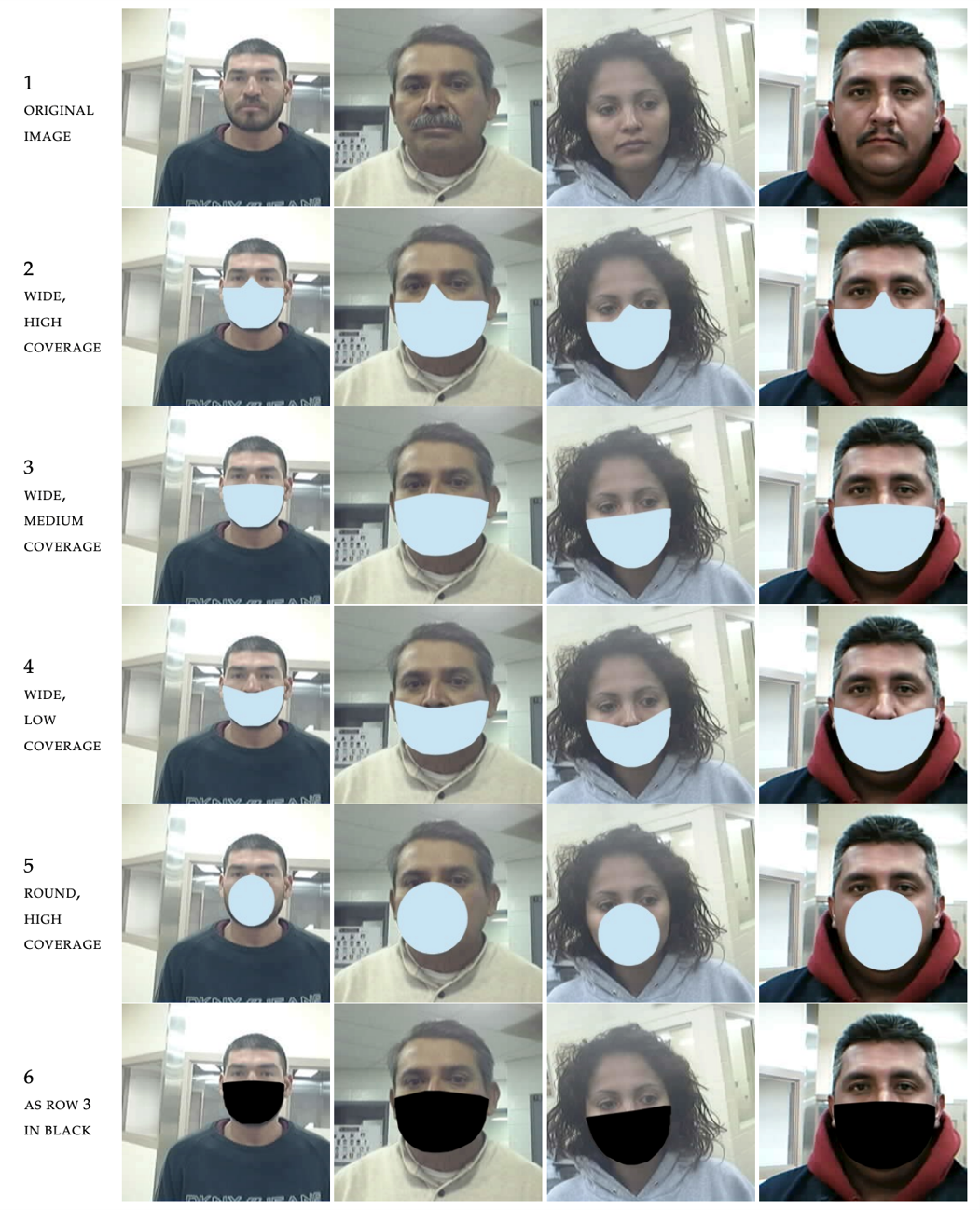 目前,可用于训练和评估人脸识别系统的图像数据集是有限的。据报道,美国国家标准与技术研究所(NIST)的研究通过将口罩(各种颜色、大小和位置)叠加在没有带口罩人脸的图像上来解决这个问题。