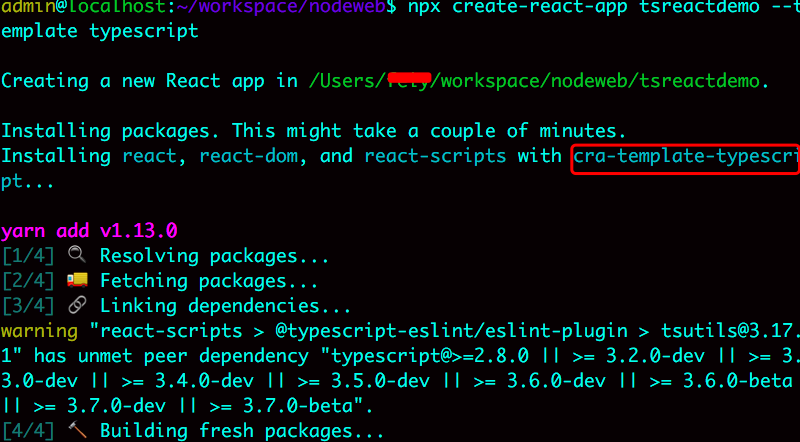 1、直接构建带有typescript的react项目,我们需要增加额外的参数,模版不能使用默认的cra-template。而是使用cra-template-typescript。