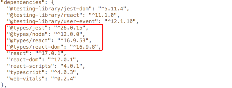 其实,依赖就是多了@types/jest,@types/node,@types/react,@types/react-dom 。