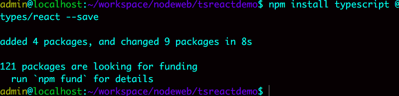 2、在react项目的基础上,直接加入typescript相关的依赖即可。