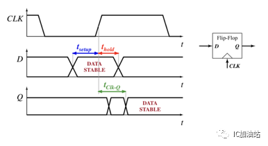 hold time: 时钟沿到来之后输入信号D必须保持稳定的最小时间