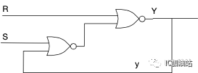 而异步电路就没有时钟的概念了,存储元件所存的状态跟随了输入信号的变化立刻发生变化。信号之间的传递通常通过握手(handshake)来完成,因为没有时钟的约束,每一级存储元件之间的逻辑电路都是各自独立的,可以各自进行优化,这样可以达到很好的性能。但是这既是优势,也是劣势。劣势就在于EDA工具没有满足每一级都单独优化的计算能力,而且由于相邻的级之间互相影响,使得计算总的时序时变得异常复杂,所以异步电路的规模通常无法做大,进而也限制了它的用途。目前更多的也只是在学术研究方面,并没有成为当今SoC设计的主流。下面这个例子实现了一个状态存储单元,next state Y会依据当前状态以及R,S的值立刻发生变化,显然这样的状态变化更加快速,但是分析起来也更加复杂。
