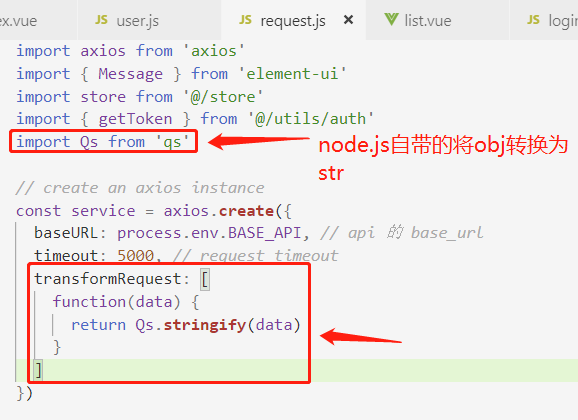 3、使用axios(跨域)请求接口的时候会出现发送给后端的数据是object的格式!后端会接收不到参数
