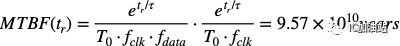 这是一个非常正确的问题,的确,double flop synchronizer不能完全消除亚稳态!但是很多有经验的工程师会告诉你,用个double flop synchronizer就够了,那是因为double flop会使得metastable产生的概率显著降低,这就又回到了我们上一讲的MTBF的概念。在使用double flop的时候,由于给了第一级flop一个周期的时间去稳定,使得两级发生metastable的概率大大降低。我知道大家都不喜欢看公式,下面给了一个100MHz时钟的例子,大家只需要关心一下最终的结果,是957亿年,而地球的年龄是46亿年,太阳的寿命是100亿年,也就是说,直到太阳毁灭,你也碰不到下一次metastable的产生。