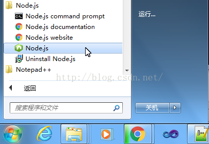安装完成后,开始菜单里会添加一个Node.js的目录,如下图所示: