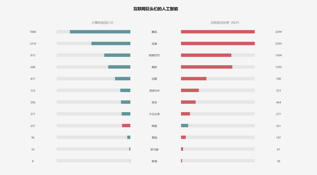 为支撑AI技术能力建设,腾讯不断加大研发投入。《2019年腾讯研发大数据报告》显示,2019 年腾讯研发人员占比高达 66%。同时,腾讯 2019 年新增研发项目超过 3500 个。随着腾讯全面拥抱产业互联网的战略推进, 2019 年 To B 项目数量比 2018 年增长了 77%。在代码数量上,2019 年腾讯新增代码行数高达 12.9 亿,相比 2018 年增长了 30%。截至2020年3月,腾讯在全球拥有超过6500项AI专利,有超过800篇论文被国际顶级AI会议收录。目前AI专利上,腾讯已在国内互联网企业里排名第一。