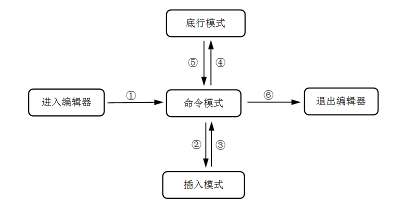 VI编辑器的3种模式实现了不同功能的操作,在某个模式下,需要切换到另一个模式,可以按图示操作。