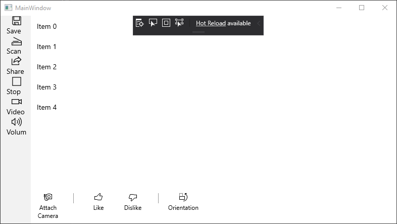 在我们的Sample工程中,我将名为SplitViewDemo的UserControl整个丢到了WPF工程的Page中。运行后我们可以发现,这看起来就像是套了WPF外壳的UWP页面。